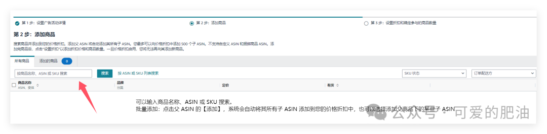 (添加父 ASIN 将自动添加其所有子 ASIN,也可选择父体下的一些子Asin参加)