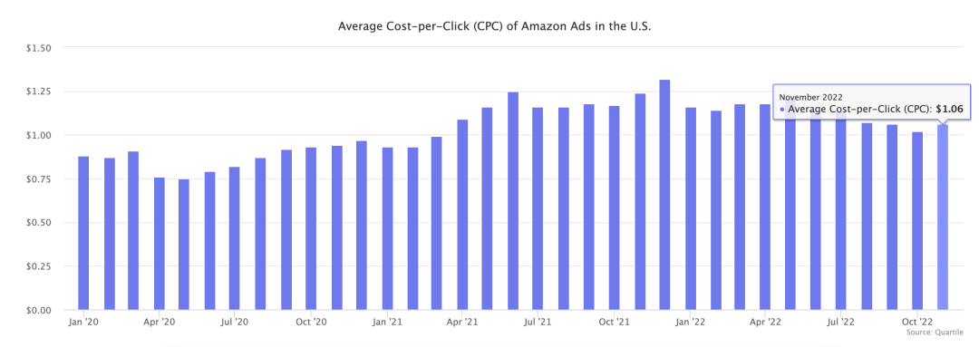 站内流量获取的成本越来越高,广告的竞争进入白热化,大卖不计利润狂砸广告费,直接导致站内CPC广告费水涨船高,整个广告池的流量和点击成本相比之前攀升了几倍。据Jungle Scout发布的《2023年亚马逊广告报告》中显示,2022年亚马逊的广告收入高达377亿美元,规模仅次于谷歌和Meta,5年增长近10倍。且2023第一季度的利润相较去年的净亏损38.44亿美元,实现大幅扭亏为盈,净利润为31.72亿美元,其中大部分得益于广告业务。